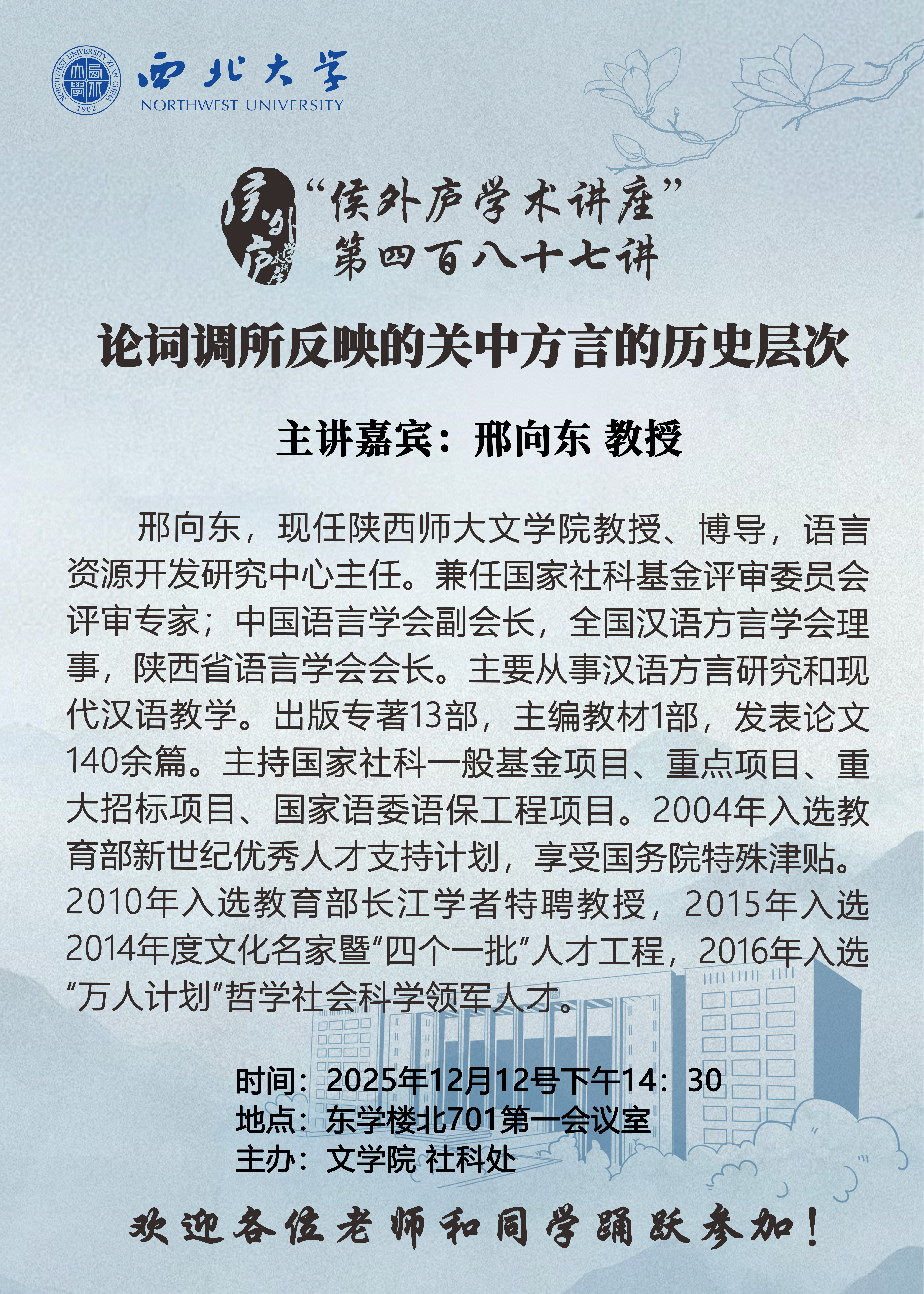 - 2025/12/08宋继华教授做客我校“侯外庐学术讲座”