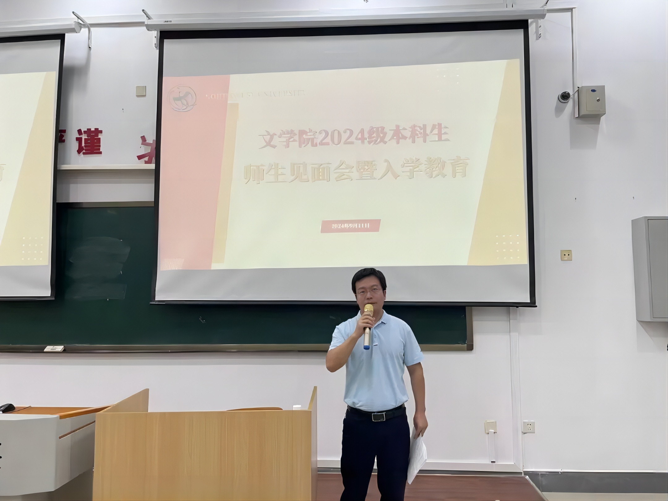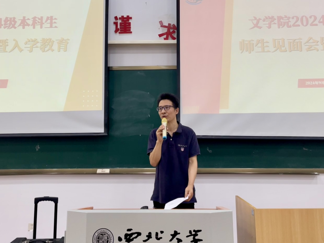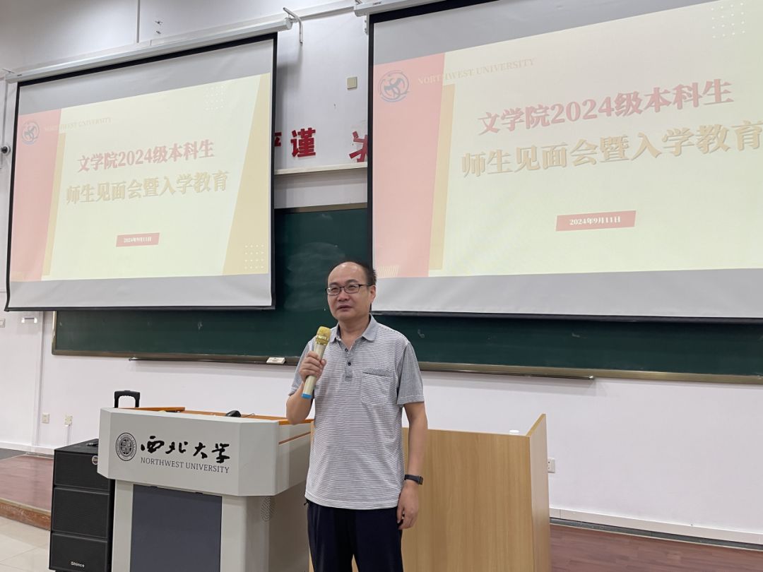 谷鹏飞院长在致辞中,对新同学们的到来表示热烈祝贺。他指出,读书的意义就在于能让我们体察万物,同情世界,守护内心,发现心灵的美好与世界的真谛。希望新生们接续“明德正学,学以成人”的学院传统,勤于读书、勇于担当、坚守启蒙,志存高远,坚持真理,守护良知,认真聆听创新性文学与思想的呼唤,学会在纷繁芜杂的虚拟世界中辨别真相的本领,努力成长为bv伟德国际1946新一代优秀学子,为中国文学、中国语言、中国影视、中国戏剧在当代的繁荣发展,为中国社会思想的整体进步,作出自己的贡献。