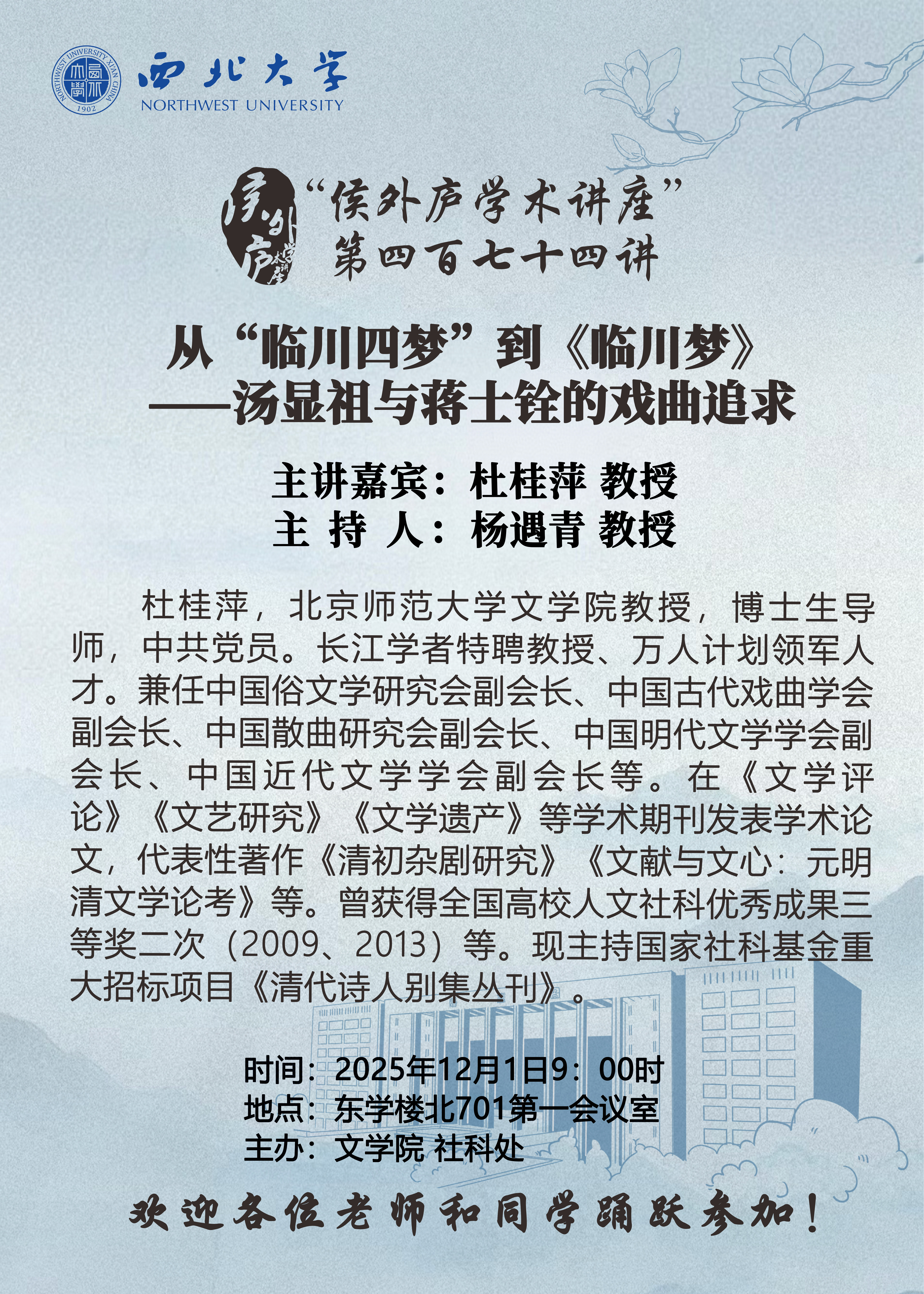 - 2025/12/03杜桂萍教授做客我校“侯外庐学术讲座”