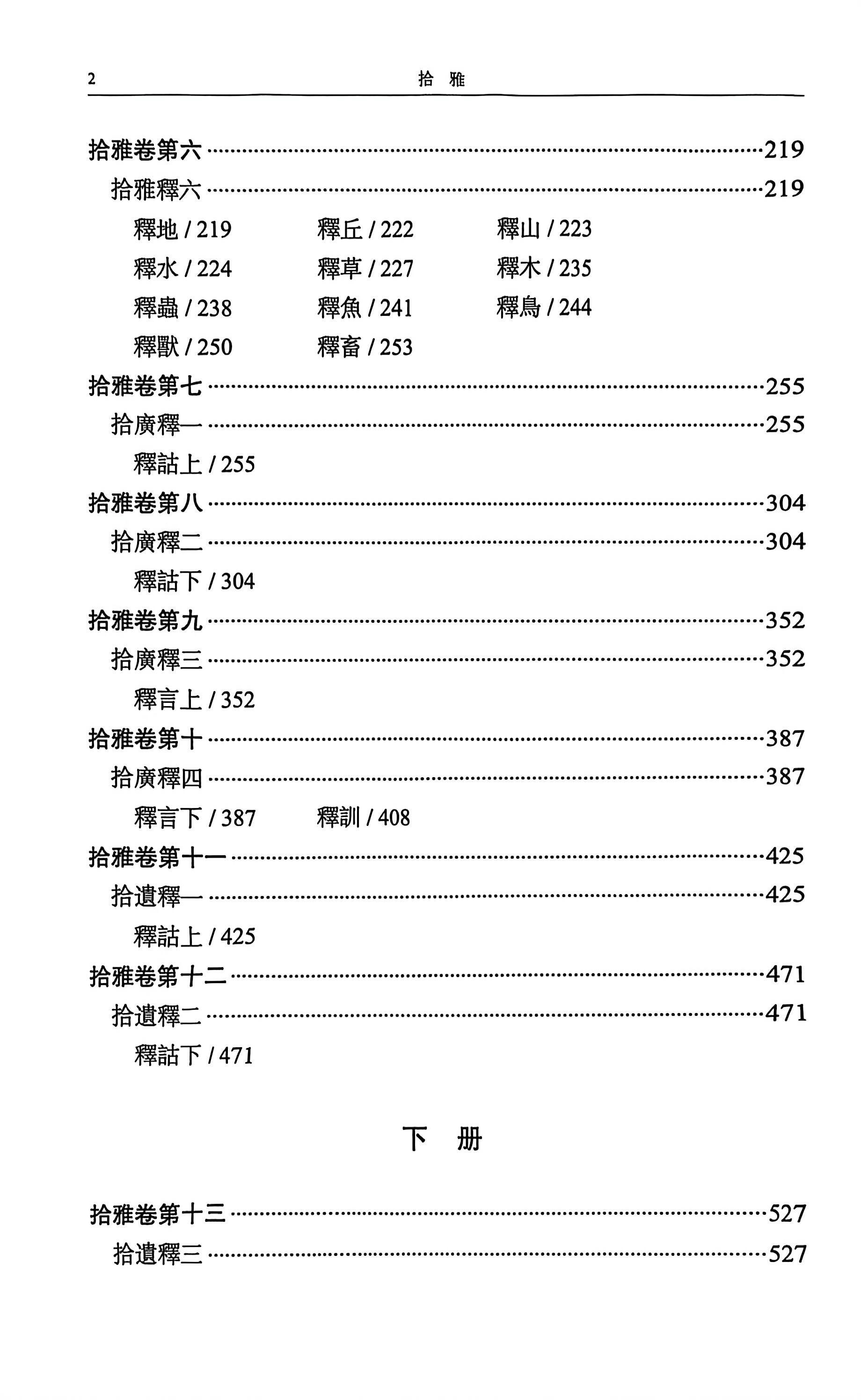 2.嘉庆庚辰(1820)孟春月初刻二十卷本:纠正六卷本讹字十余处,删增补漏数十条。胞弟夏纪堂偕夏味堂二子夏齐林、夏云林增加注释,析为二十卷。有拾雅释六卷、拾广释四卷、拾遗释十卷。《续修四库全书》第192册、李学勤主编《中华汉语工具书书库》第50、51册所收为其影印本。