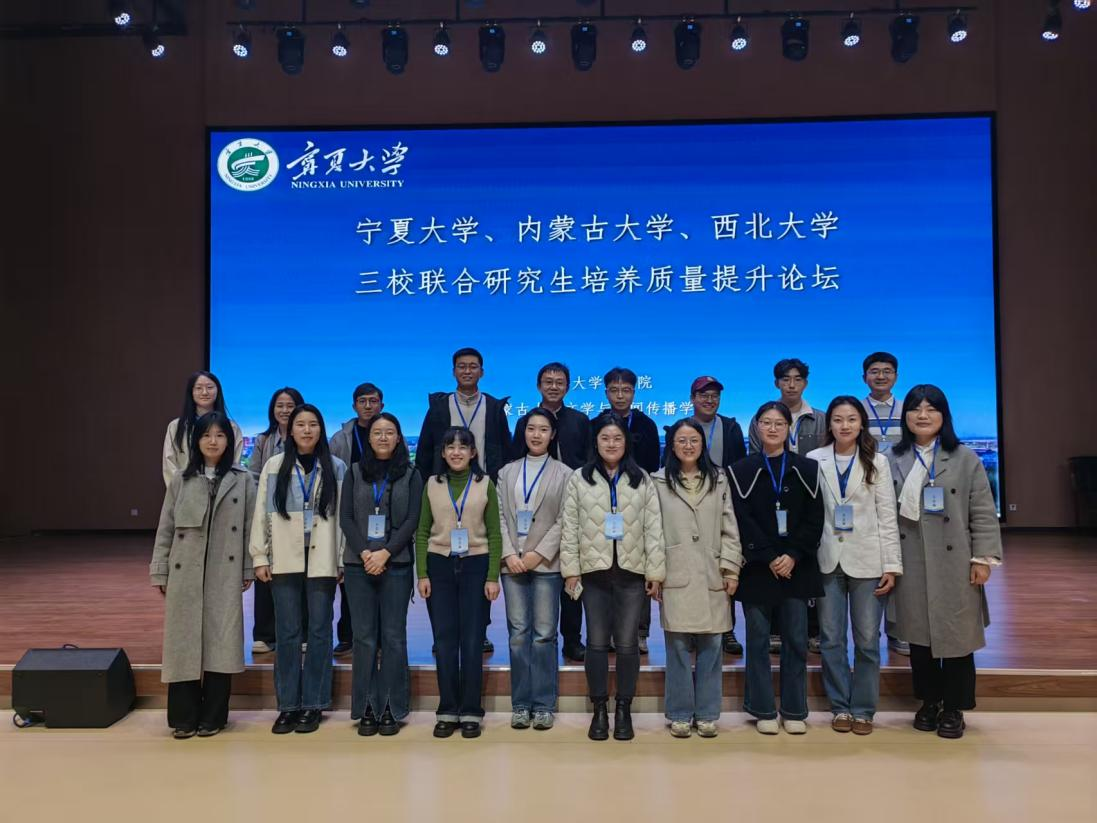 2025年10月24-25日,bv伟德国际1946、宁夏大学bv伟德国际1946与内蒙古大学文学与新闻传播学院三校联合“研究生培养质量提升论坛”在宁夏大学成功举办。本次论坛旨在搭建学术平台促进学术交流,推动西北地区高校的联合与发展,提升研究生培养质量。宁夏大学副校长谢海涛、宁夏大学bv伟德国际1946院长胡玉冰等出席论坛,我们副院长杨遇青、陈晓辉,副书记陈柯,教师代表成明明、冯鸽、赵涛、张超以及三校共130多名教师和博硕士研究生共同参加了会议。