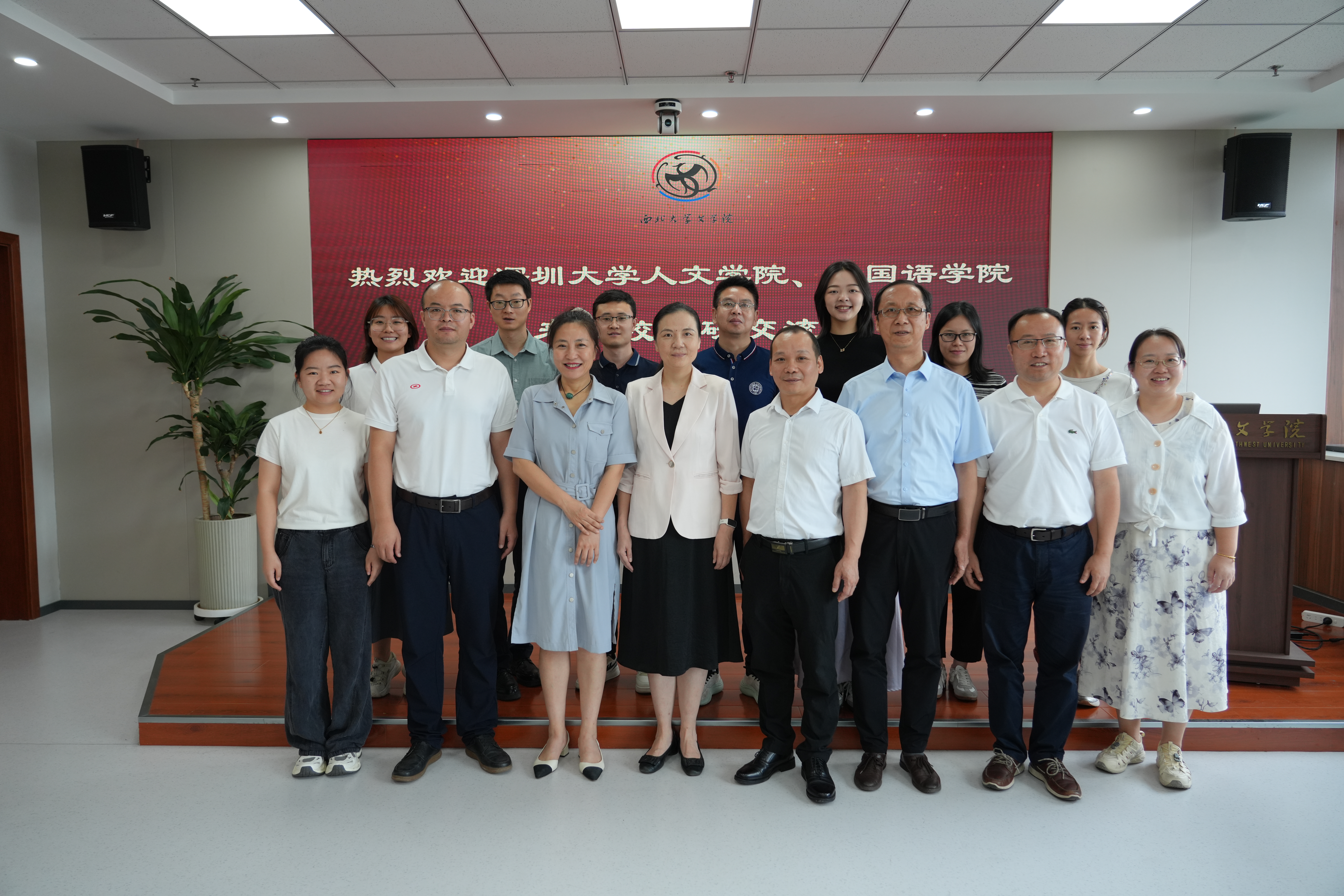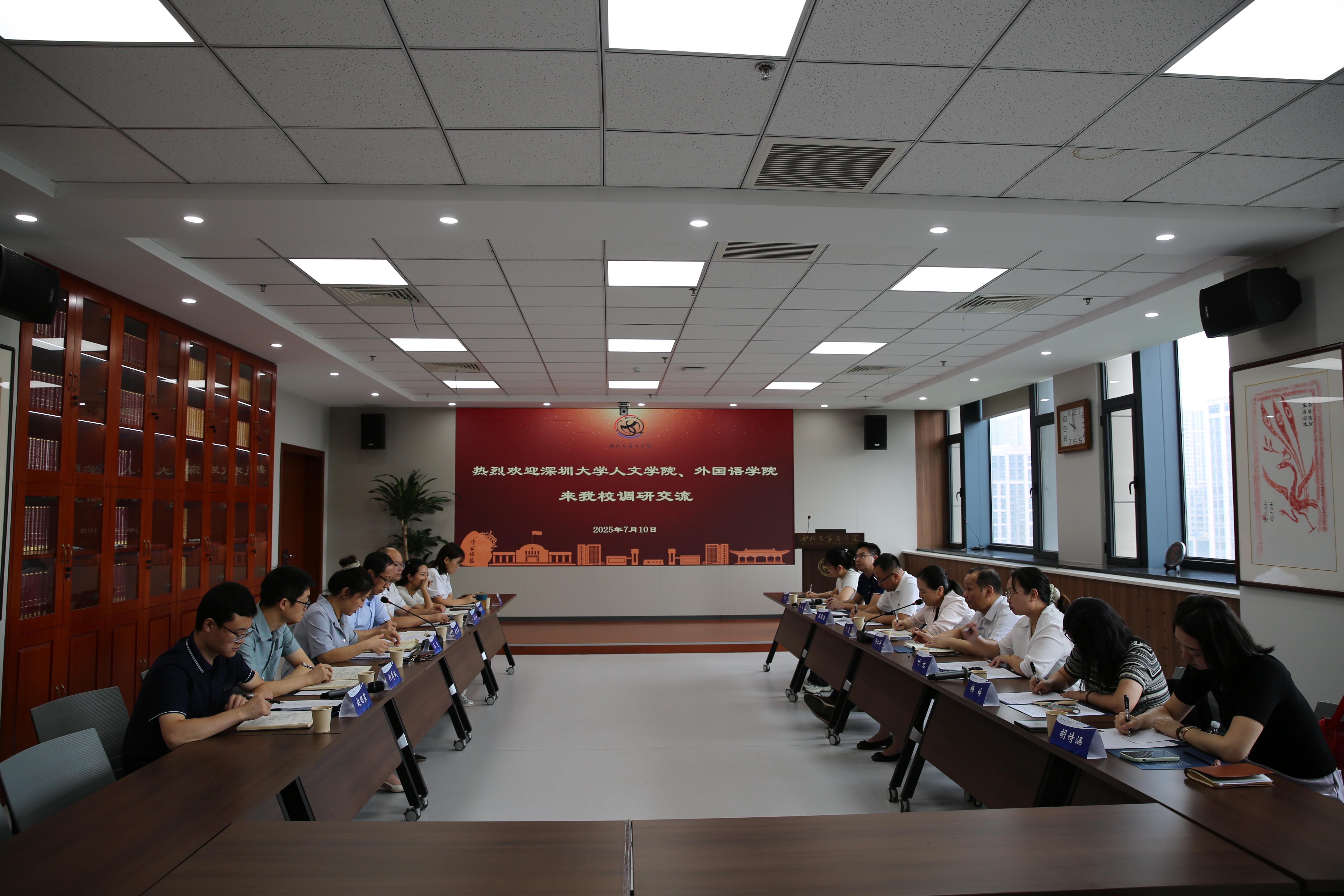7月10日,深圳大学人bv伟德国际1946党委书记弋灵、外国语学院党委书记邱江平率团一行8人到访调研,bv伟德国际1946党委书记姜宇、外国语学院党委书记赵志厚等参加交流座谈。会议由姜宇主持。