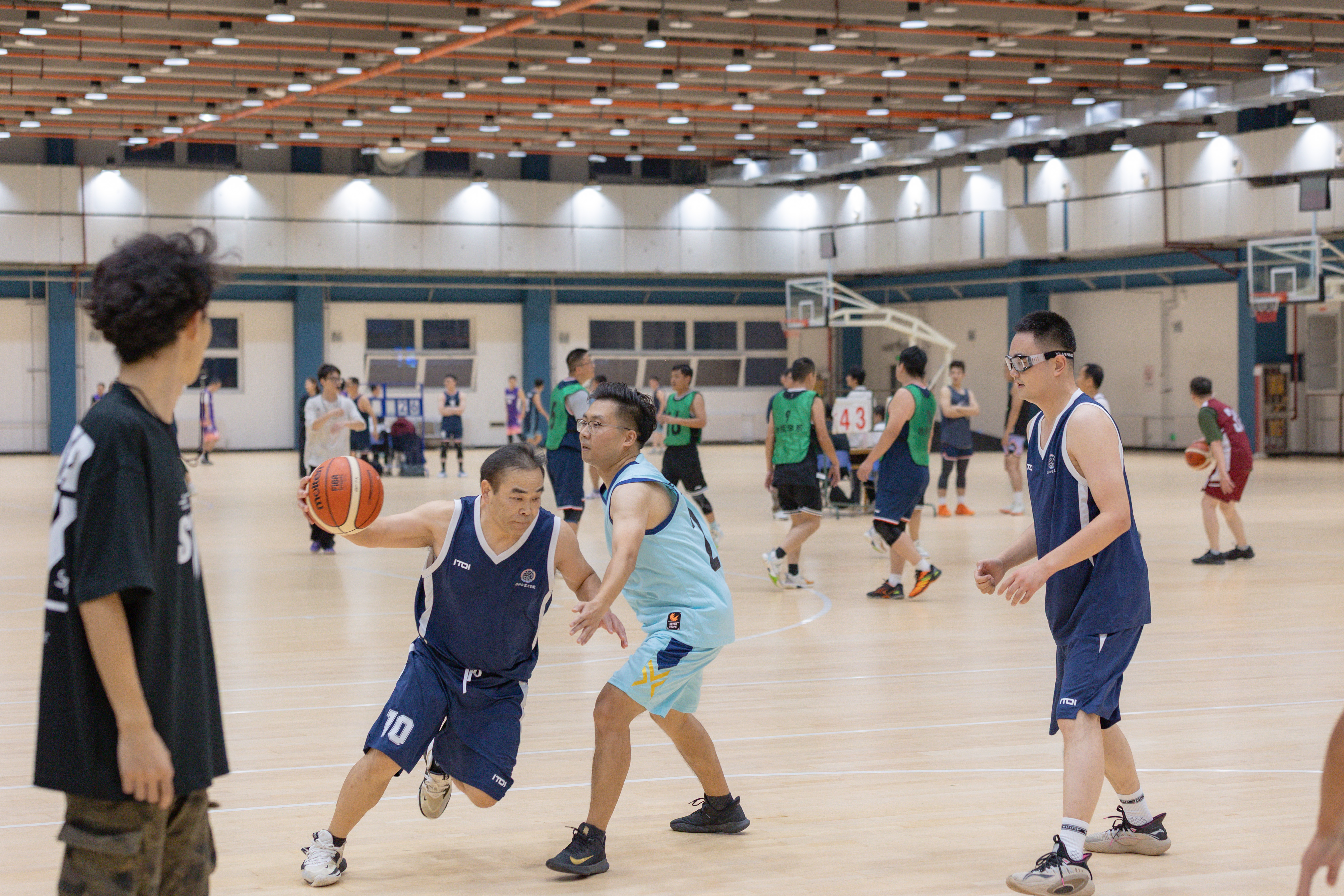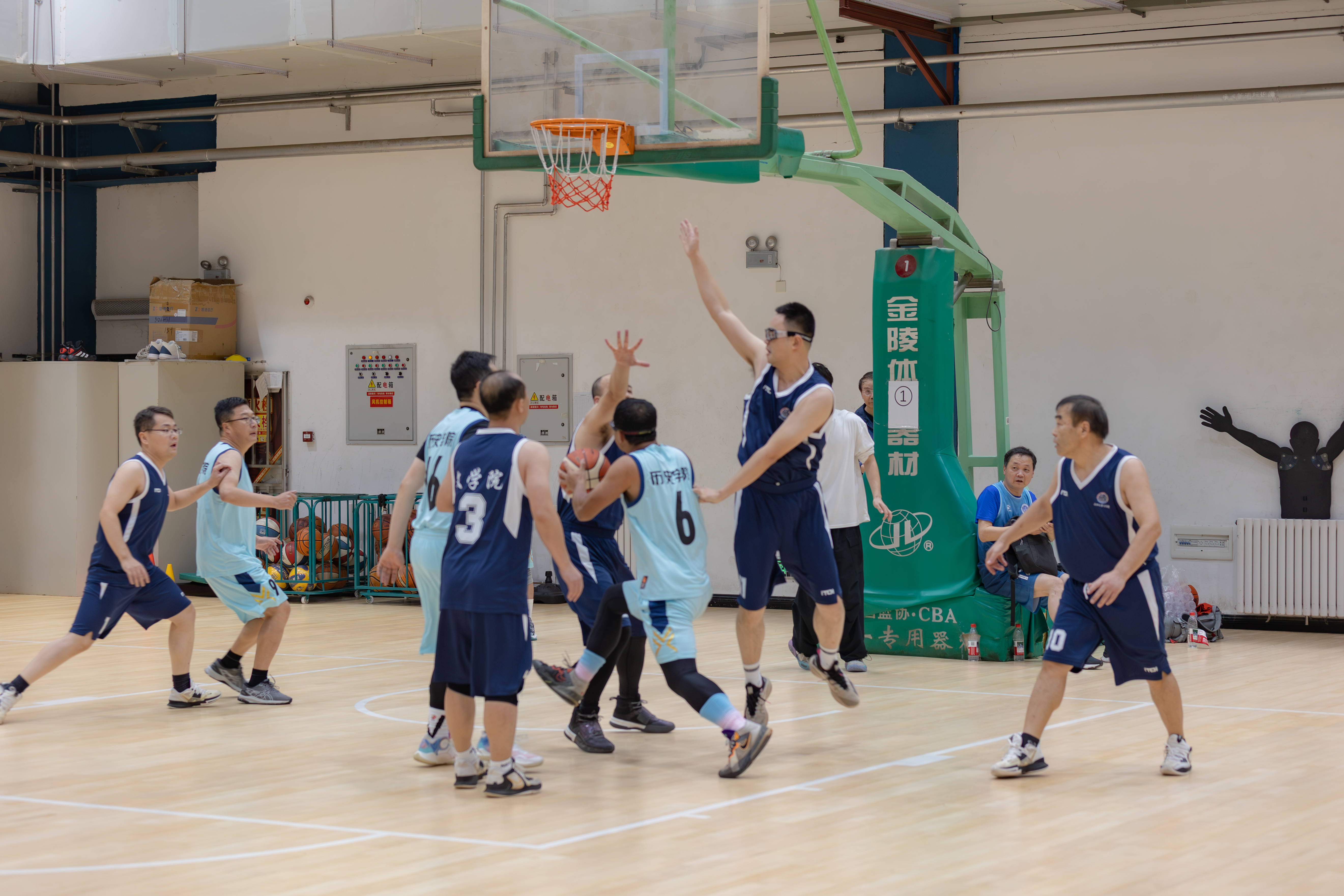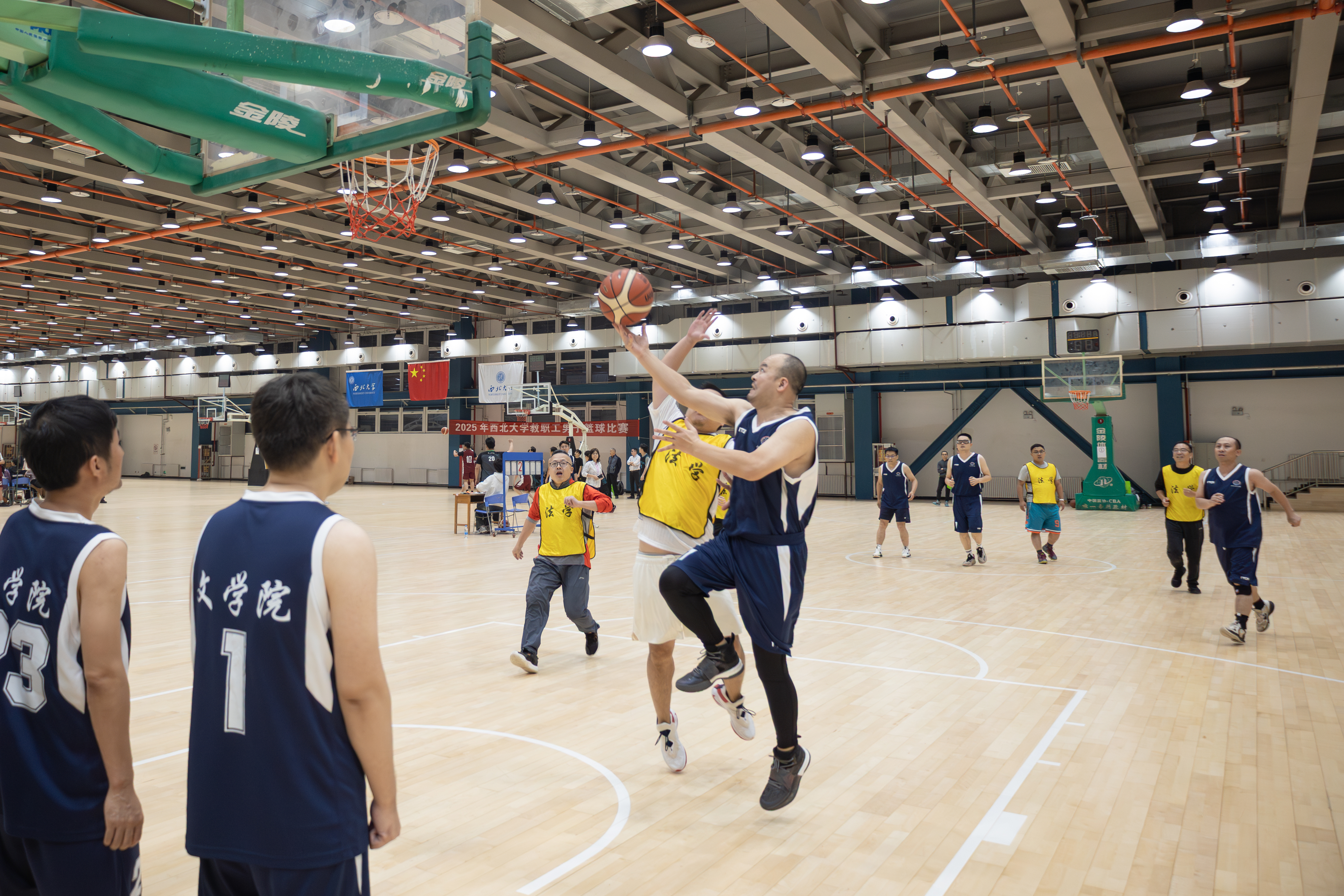 在繁重的教学科研工作之余,我们教职工成立了“老男孩”篮球队,坚持每周训练一次。在学校正式比赛之前,组织了多次模拟赛,提前适应比赛节奏,增强体能储备和战术演练。面对高手如林的对手,我们凭借精准的投篮、灵活的跑位和娴熟的传切配合,打出了行云流水般的团队篮球,充分体现了团结拼搏、勇攀高峰的文苑精神。