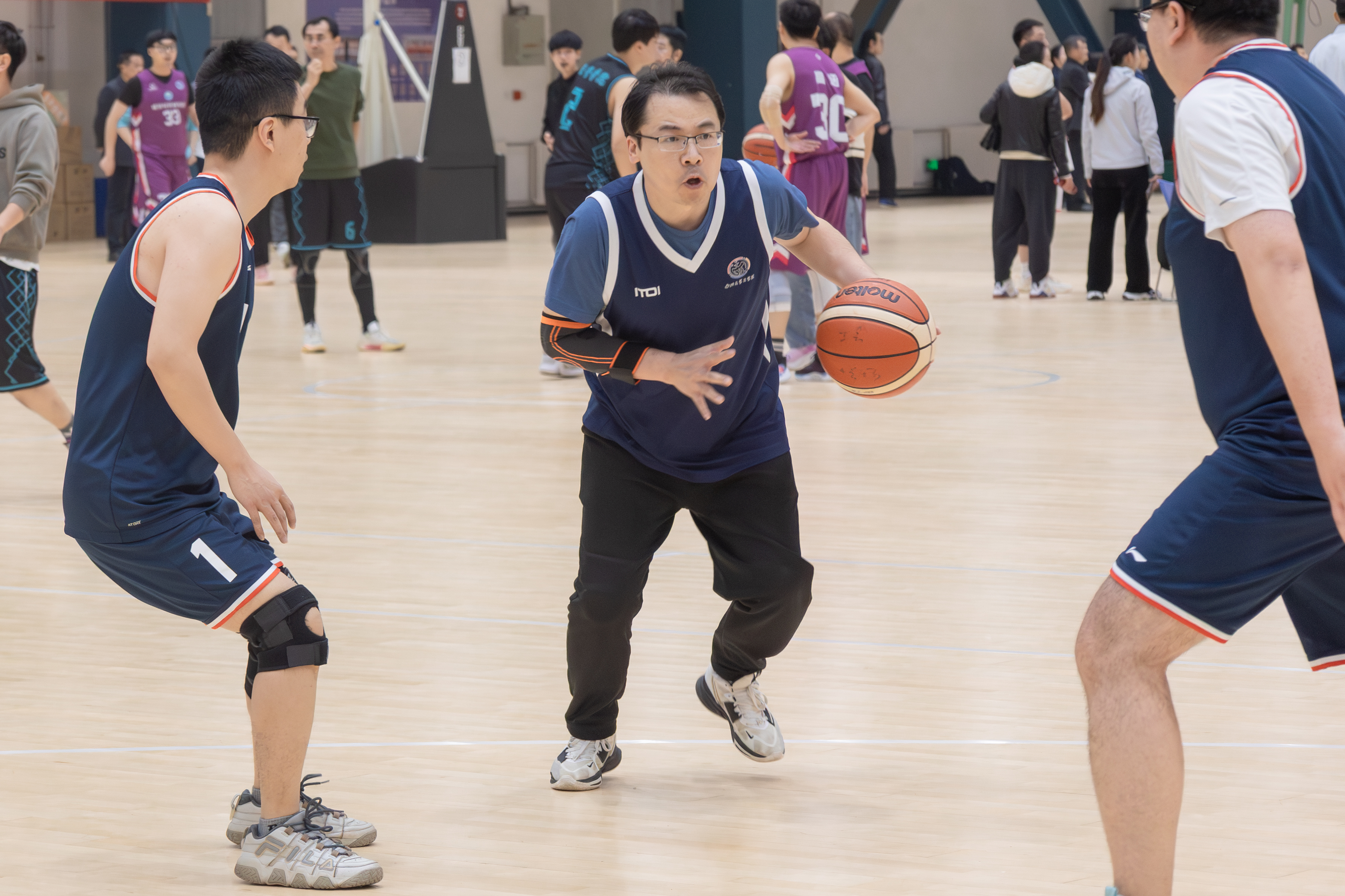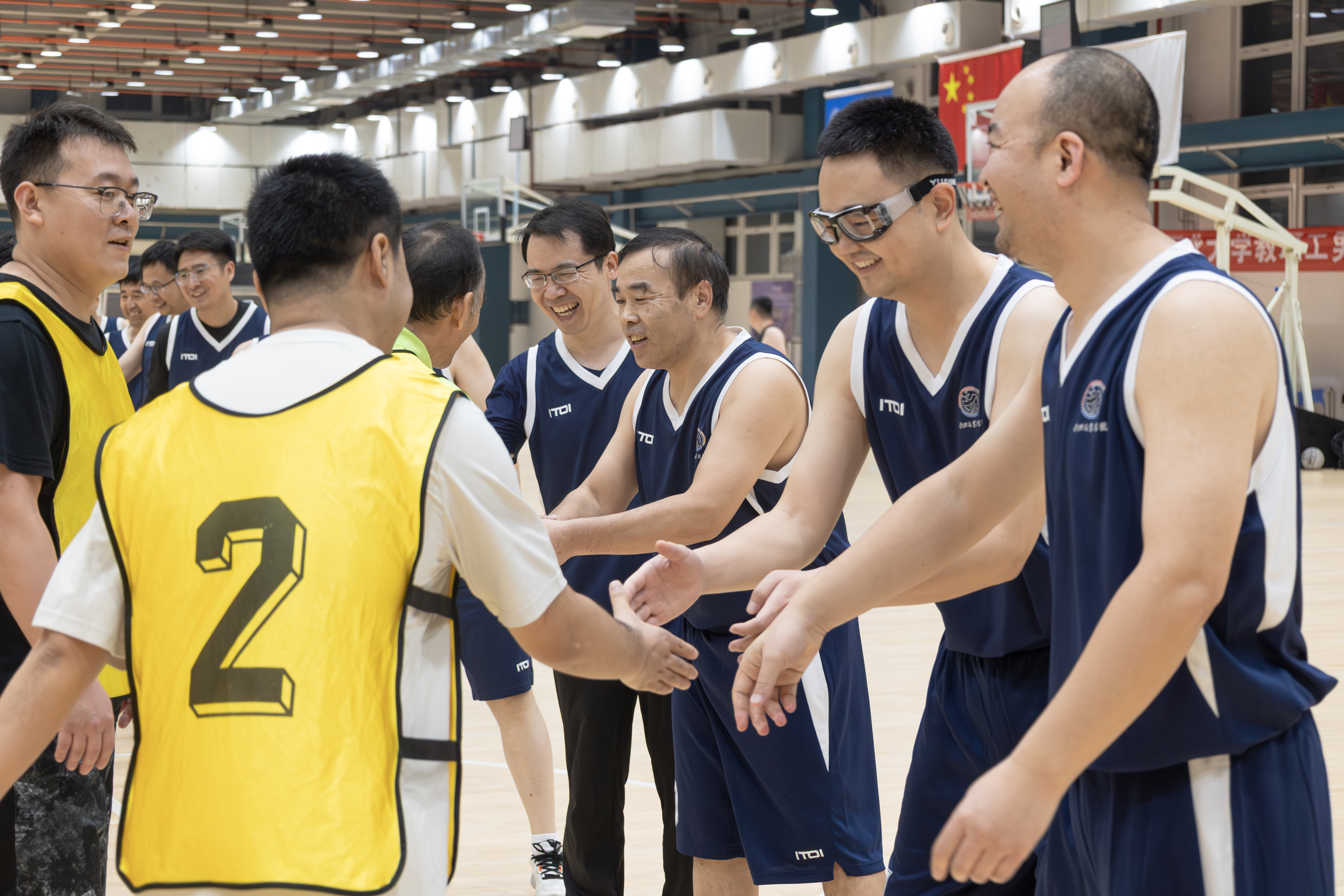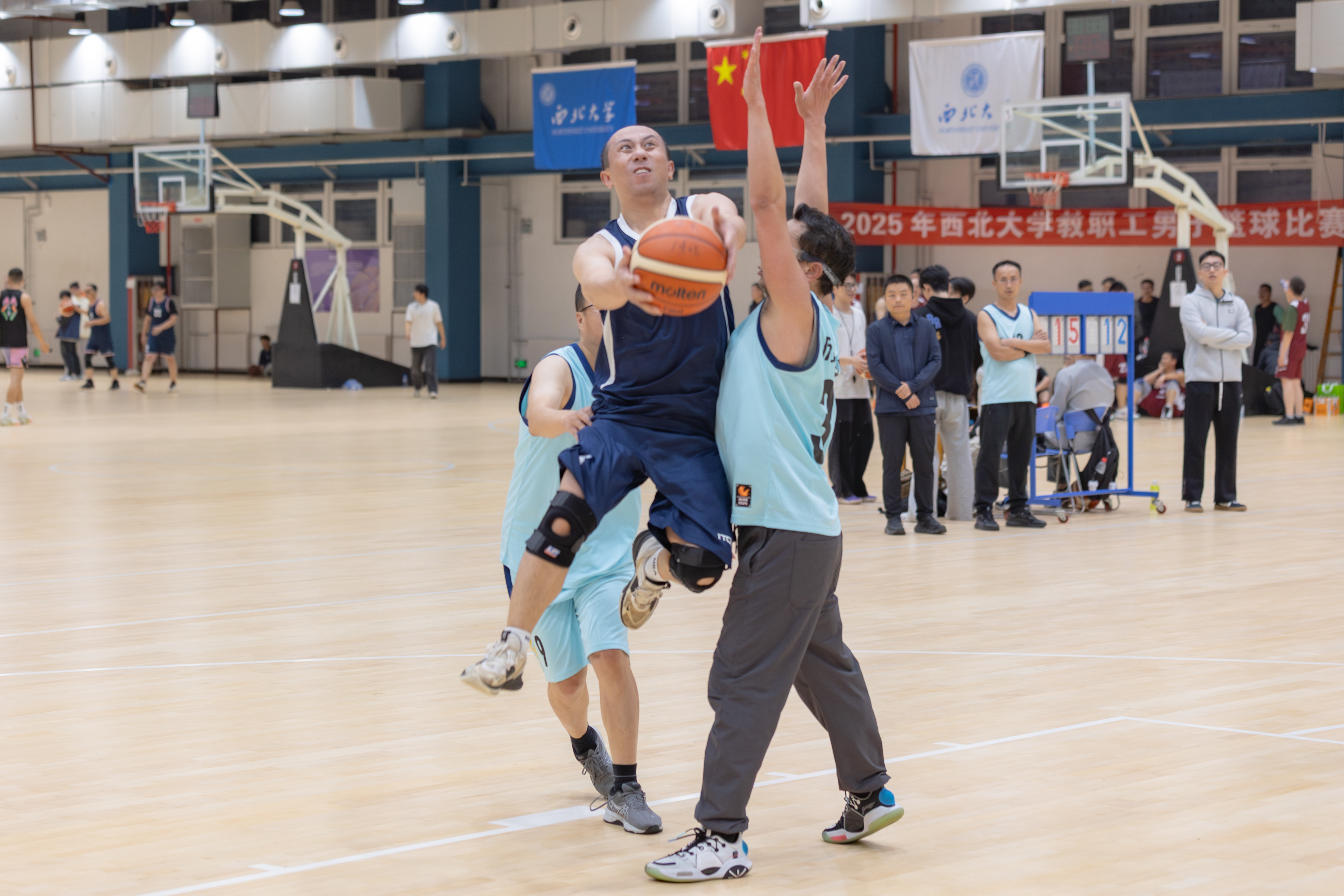 在繁重的教学科研工作之余,我们教职工成立了“老男孩”篮球队,坚持每周训练一次。在学校正式比赛之前,组织了多次模拟赛,提前适应比赛节奏,增强体能储备和战术演练。面对高手如林的对手,我们凭借精准的投篮、灵活的跑位和娴熟的传切配合,打出了行云流水般的团队篮球,充分体现了团结拼搏、勇攀高峰的文苑精神。