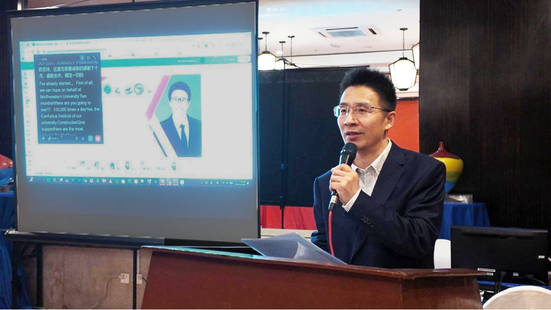 bv伟德国际1946院长谷鹏飞教授随后致辞,谷鹏飞院长介绍了bv伟德国际1946的学科优势及国际中文教育领域的成果,强调高校教育合作与实习实践是中国语言文化海外传播的重要载体,表达了与布拉卡国立大学深化合作、共促文化交流的真诚意愿。