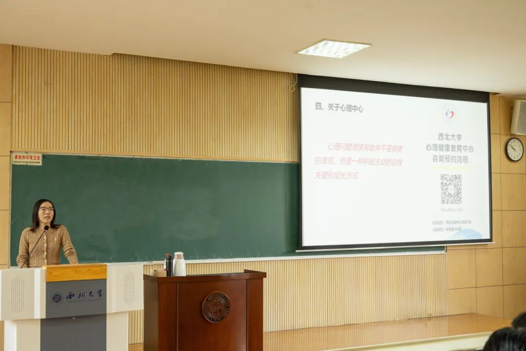 杨婉晨老师还特别向同学们介绍了我校心理健康教育中心这一专业后盾。她细致说明了中心提供的个体咨询、团体辅导、心理热线与线上平台等专业服务,并真诚表示:“心理健康教育中心的大门始终向大家敞开,学会在需要时主动求助,本身就是一种智慧与力量。”