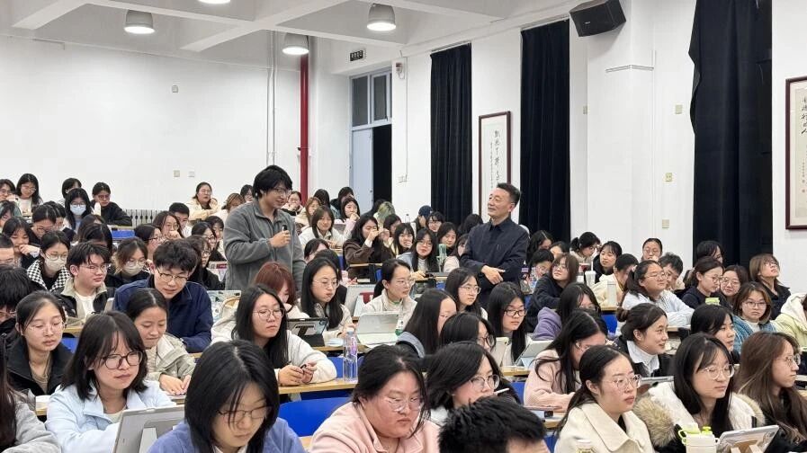 结合当下国际形势,赵作纽老师通过提问互动的方式,引导同学们深刻领会中国坚定不移走和平发展道路的初心,进一步理解构建人类命运共同体的时代意义,希望大家将爱国情怀转化为学习动力,在大学阶段积淀知识、锤炼品格,不负时代使命。