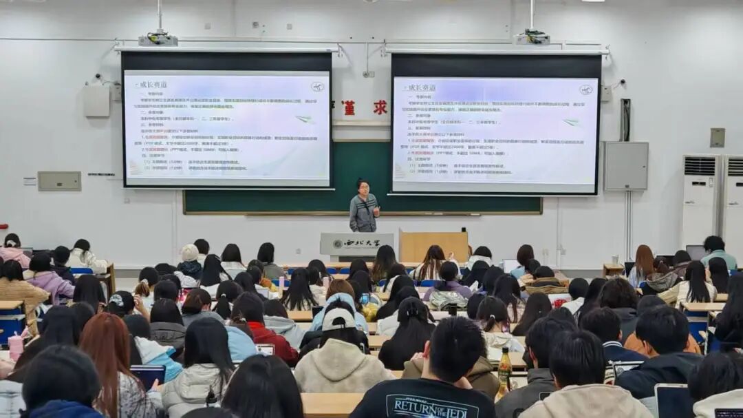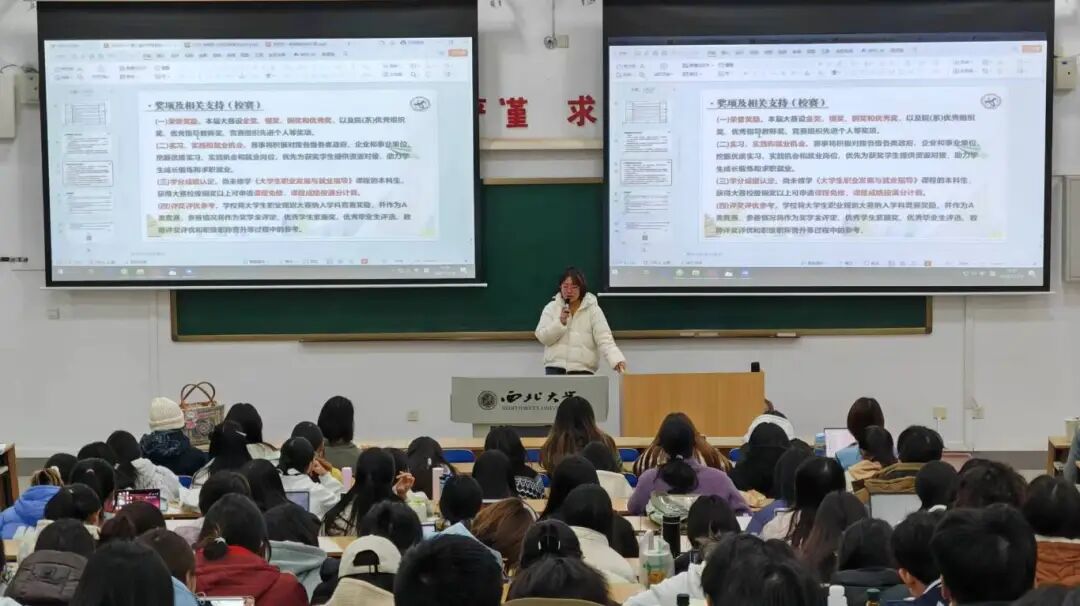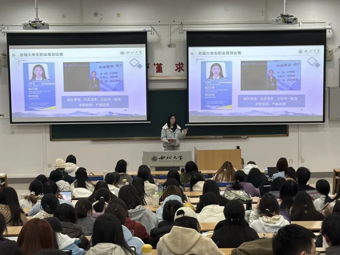 为帮助学生明确职业发展方向,树立正确的职业价值观,帮助同学们深入了解全国大学生职业规划大赛的参赛要点,高效备战职业规划大赛,2025年11月19日晚,我们在长安校区3J201举办大学生职业规划大赛经验分享会。往届大赛优秀选手代表以线上线下结合的方式进行分享,吸引百余名学生到场参与。会议由辅导员李钰莹主持。