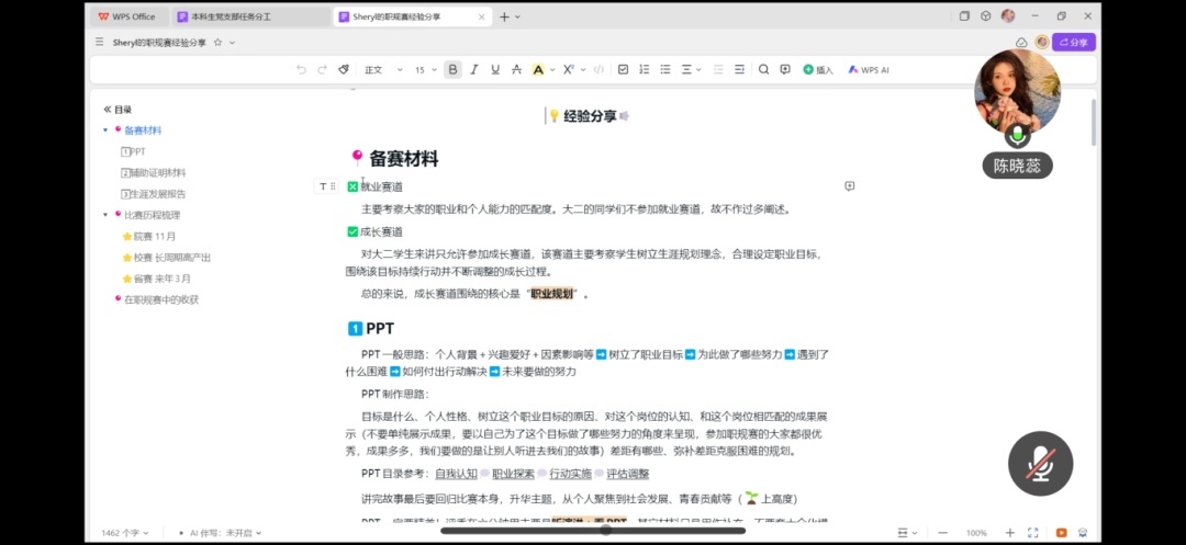 随后,我们第二届大学生职业规划大赛就业赛道陕西省金奖获得者陈晓蕊,结合自身参赛经历,从参赛材料的准备、“院赛—校赛—省赛”各阶段比赛历程的梳理等方面作了详细介绍。分享中,她强调参赛不是“自我展示的独角戏”,而是“个人理想与社会需求的同频共振”,让参赛内容更具深度与价值是比赛的关键。