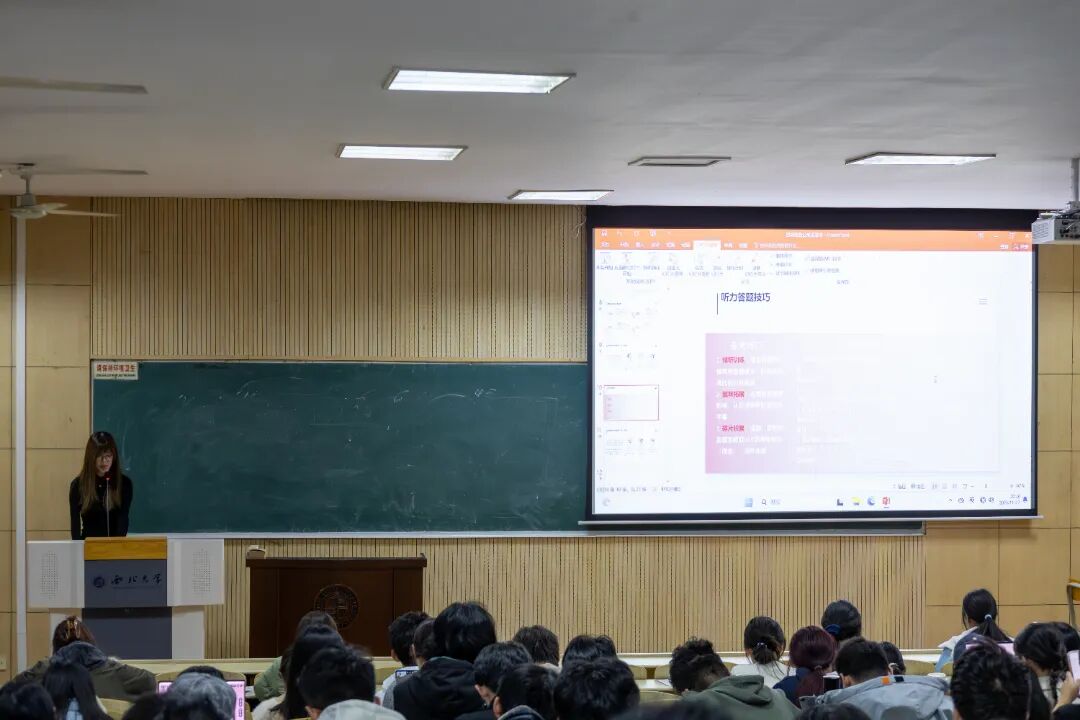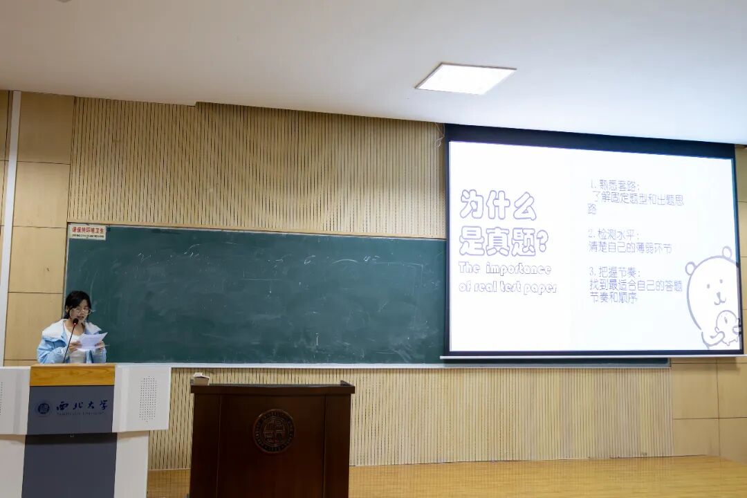 在大学英语四级备考经验分享环节,来自2024级的三位优秀学姐从备考方法、技巧运用、学习重点等方面为2025级本科生提供了可行的学习路径。