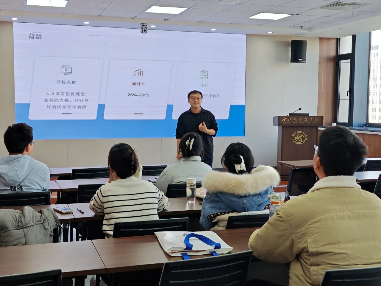 为进一步提升我们学子教师职业技能的核心竞争力,“文心林薮”职业生涯工作室联合学而思、乐读线上教育培训学校于2025年12月2日至4日举办了文心工坊·教途启航训练营。本次训练营聚焦教师方向求职面试和教师资格证面试全流程关键环节,围绕教案设计、板书互动、课堂展示、激情感染力等核心教学能力展开,通过专题讲授、示范课展示、互动研讨等多种形式,帮助参训学生掌握实用授课技巧