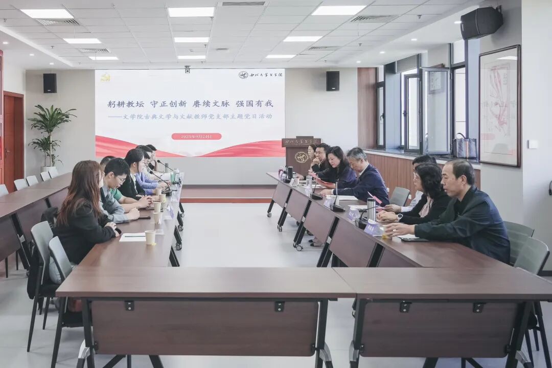 9月24日下午,bv伟德国际1946古典文学与文献教师党支部举办以“躬耕教坛 守正创新 赓续文脉 强国有我”为主题的党日活动,集中学习了习近平总书记在2025年教师节前夕给全国特岗教师代表的回信,学习传达了中省和校党委总结深入贯彻中央八项规定精神学习教育有关会议精神,交流研讨了2025年第8期《求是》杂志刊发的习近平总书记重要文章《加快建设文化强国》。校党委书记蒋林到会指导,支部联系院领导姜宇列席会议。本次活动由党支部书记周喜存主持。