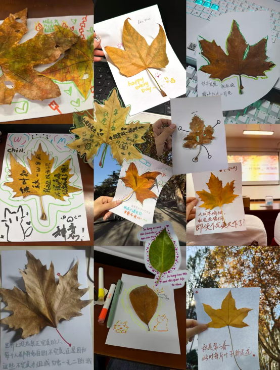 本次活动将劳动教育、美育与心理成长融为一体,不仅深化了团员对自我与他人的理解,也增强了支部的归属感与活力。一片片普通的落叶,在创意与善意中,成为承载成长故事的珍贵标本,真正实现了“一叶知秋,一页知我”的深刻寓意。